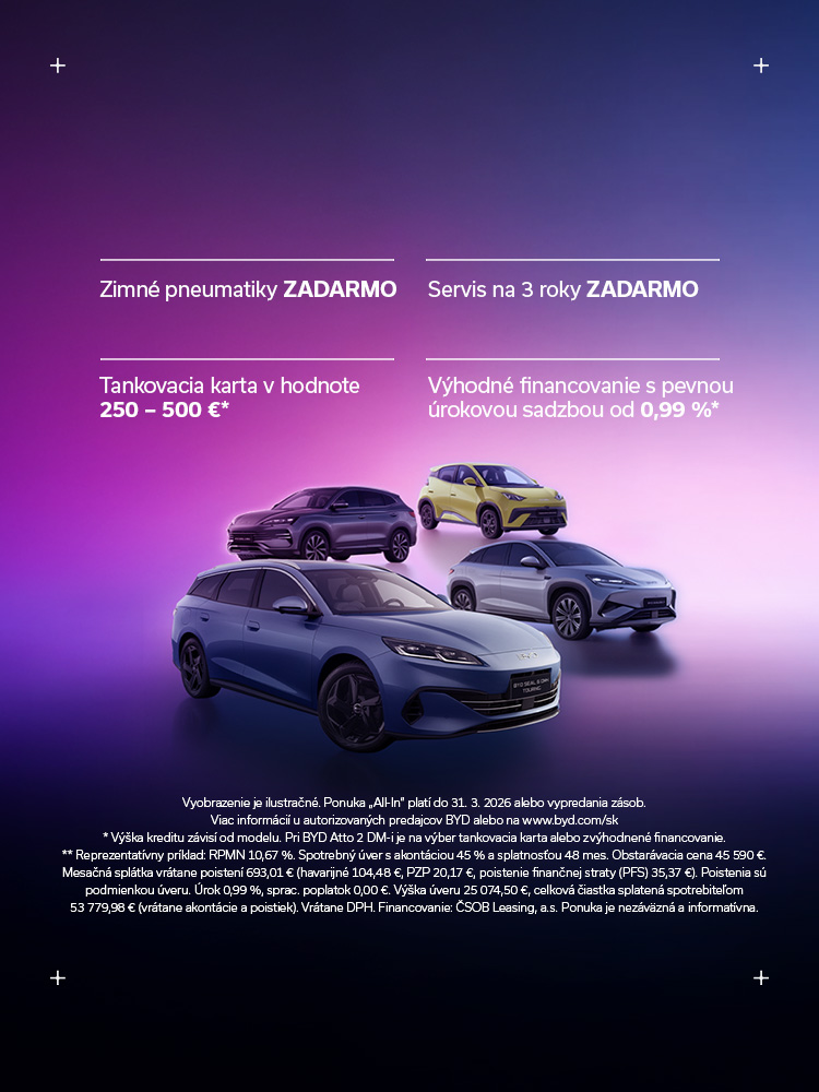 BYD – „Build Your Dreams“ – od roku 1994 posúva hranice technológií a prináša víziu udržateľnej budúcnosti, v ktorej sa inovácia stáva každodennou realitou. Ako svetový líder v elektrických a plug-in hybridných vozidlách udáva tempo modernej mobility a patrí medzi najprogresívnejšie značky sveta, zaradené v prestížnom rebríčku Fortune Global 500.